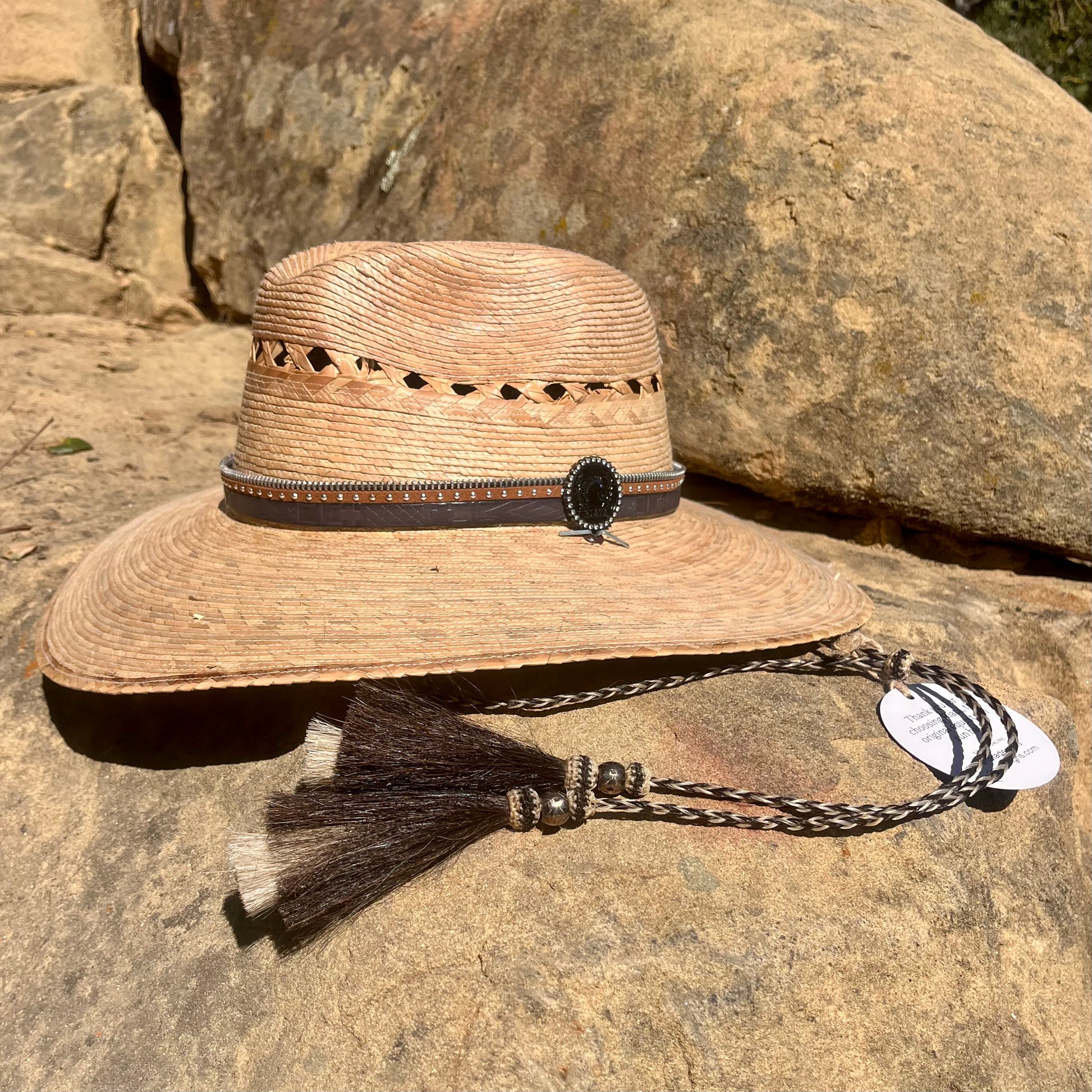 The Riviera Riata is part boho, part cowgirl, and all equestrian chic. A classic fedora style with lattice crown and generous 4-inch brim provide the ultimate sun protection.